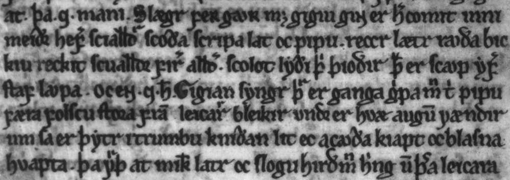 Stofnun Árna Magnússonar, Reykjavík.En plus de ces deux strophes, la Sverris saga a conservé une lausavísa dans laquelle le poète réclame un vent favorable, qui lui valut une tunique comme récompense de la part du roi.