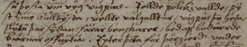 Première strophe des Hrafnsmál dans l'Eyrbyggja saga (manuscrit islandais AM 126 fol., 1635-1648).